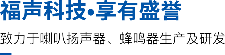 中心泰州福聲電子科技有限公司主要生產聲學器件,有著豐富的研發生產銷售經驗, 我們主要生產喇叭、揚聲器、壓電式蜂鳴器、電磁式蜂鳴器、貼片式蜂鳴器等電聲元器件。